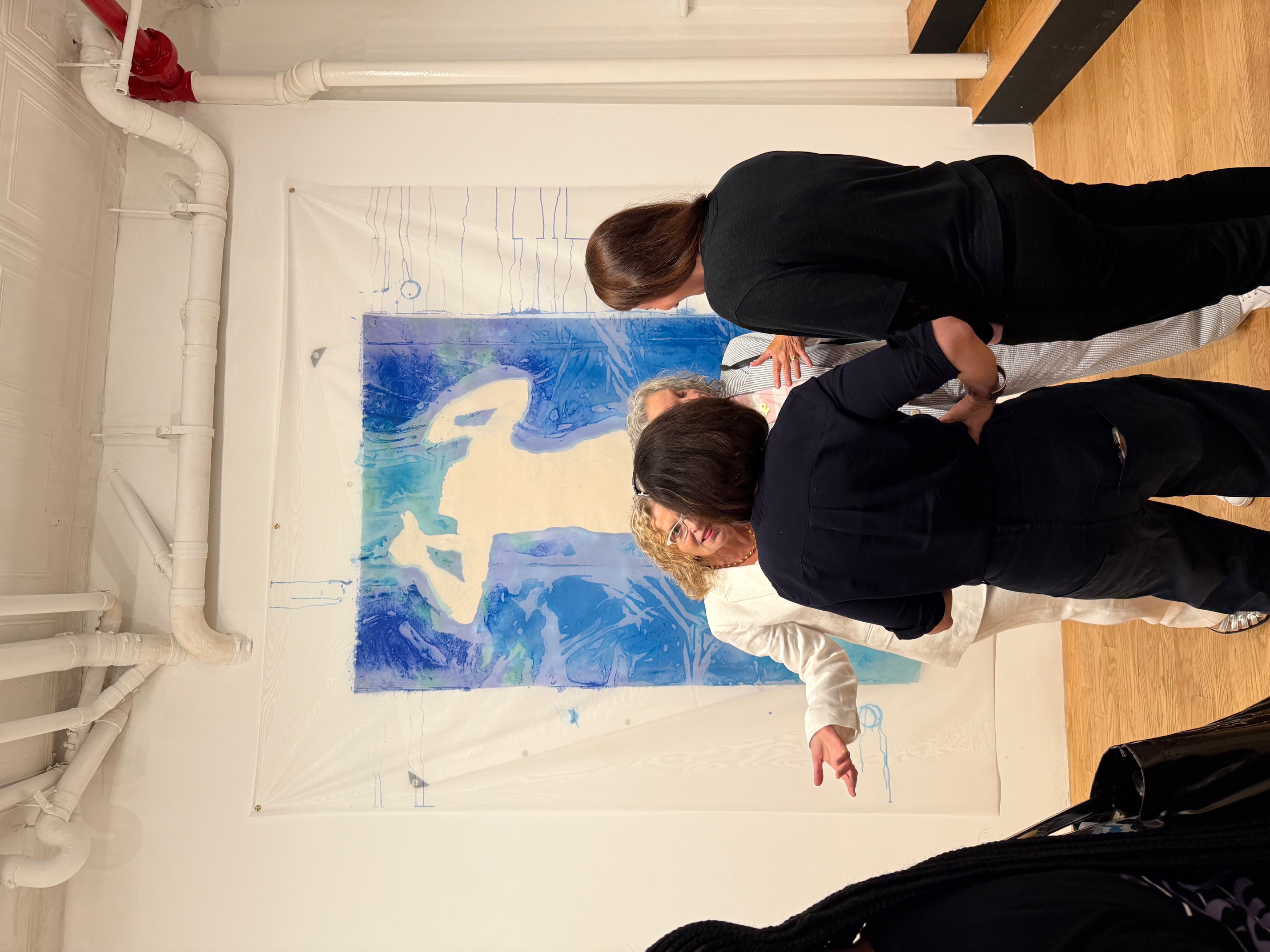 Army of Love, Pattie Cronin’s solo show at Manhattan’s Chart Gallery, was inspired by archeologist Iris Love’s discovery of Aphrodite’s temple in Knidos, Turkey. Cronin celebrates the queer, mythic, historic, and feminist aspects of this ancient goddess. Her unstretched paintings, as well as sculptures and watercolors, invoke the sea, site of Aphrodite’s birth, and earth. Cronin was born in 1963 in Beverly, Massachusetts and was among the first gay artists to legally marry her artist partner Deb Kass in New York City. Her Rome Prize, honors, and exhibitions are at https://www.patriciacronin.net and https://chart-gallery.com. The Army of Love exhibition title says it all.