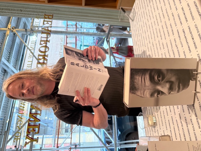 Bright Lights, Big City follows an unnamed 24-year-old Manhattan fact-checker who unravels after his wife leaves him. Artist Tim Youd, using the same style typewriter as Jay McInerney’s original Smith-Carona classic 12, greeted the author as he was re-typing the novel at Cristin Tierney’s Gallery in Manhattan (photo credit: Bob Krasner @bobkrasner). Nearby guests drank champagne, but Youd will be typing until September 13; he’ll switch to an IBM Selectric II at the end as did the author for his final draft. Youd, at https://timyoud.com, has 1600 followers on Instagram; collectors buy his typed pages as art. Youd’s manual typewriter collection at home in California may be art, too. As his typed art takes him all over the world, Youd seems happy enough yet he often types books by men who are not.