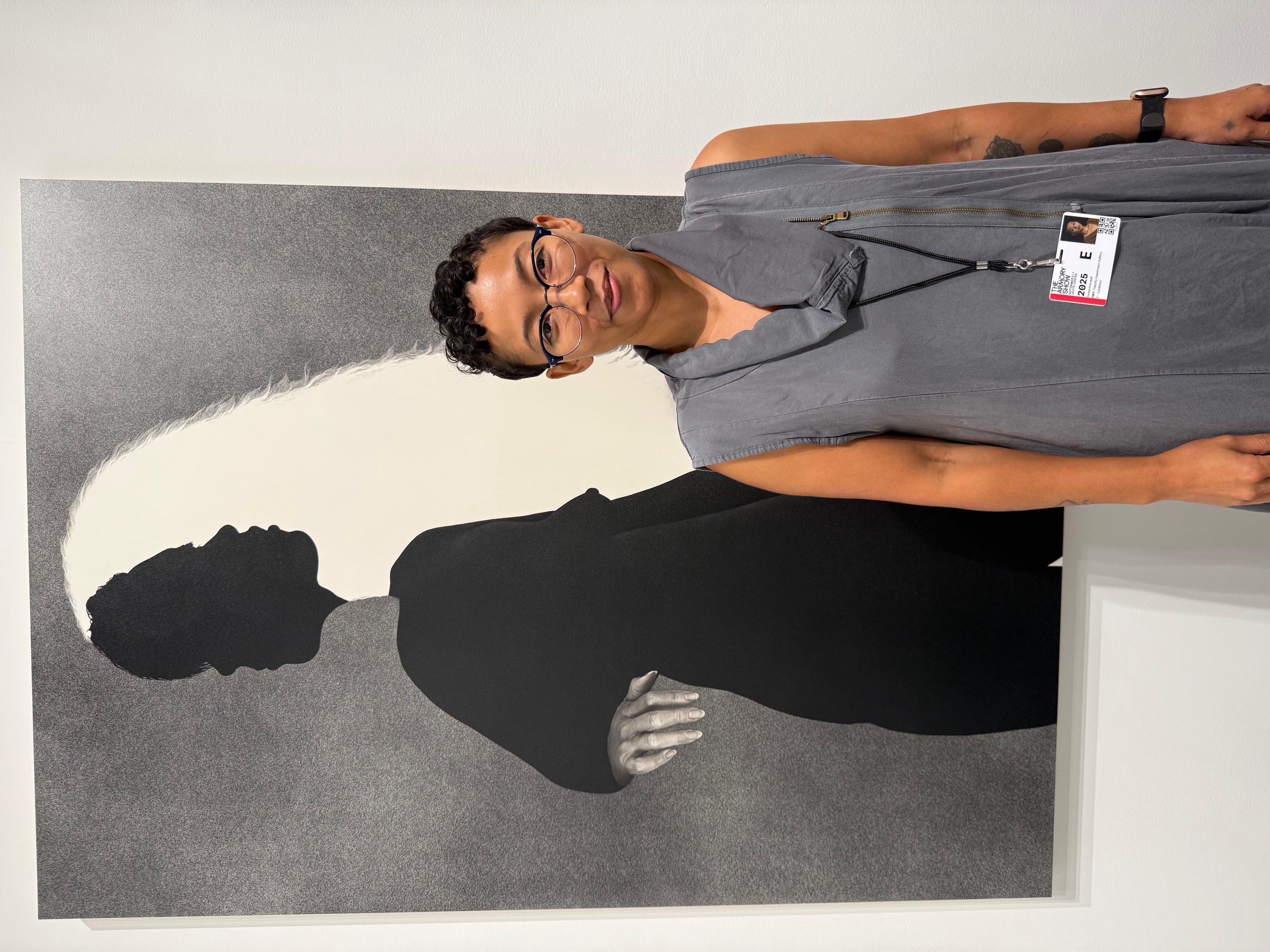 Samantha Yun Wall explores her own Black/Korean hybridity and lost and folk narratives that demonize multiracial women. Her exquisite, affordable ink on clayboard drawings positively address stereotypes some women face. In A Shadow to Live In, 2024, 30 x 24 inches, the black ink is painstakingly scratched away to reveal a darker body embracing a tan-toned nude female body. The diagonal curves of the arms and body parts, a hint of light behind the couple, and the close-up feeling invites the viewer to share their true intimacy. Wall, born in South Korea in 1977 and living in Portland, Oregon for almost three decades, recently won the Betty Bowen Seattle Museum Award and will have a solo show there in 2026 as well as a 2027 solo show at Miami’s Ringling Museum of Art. She is represented by the L.A. Timothy Hawkinson Gallery (www.timothyhawkinsongallery.com)