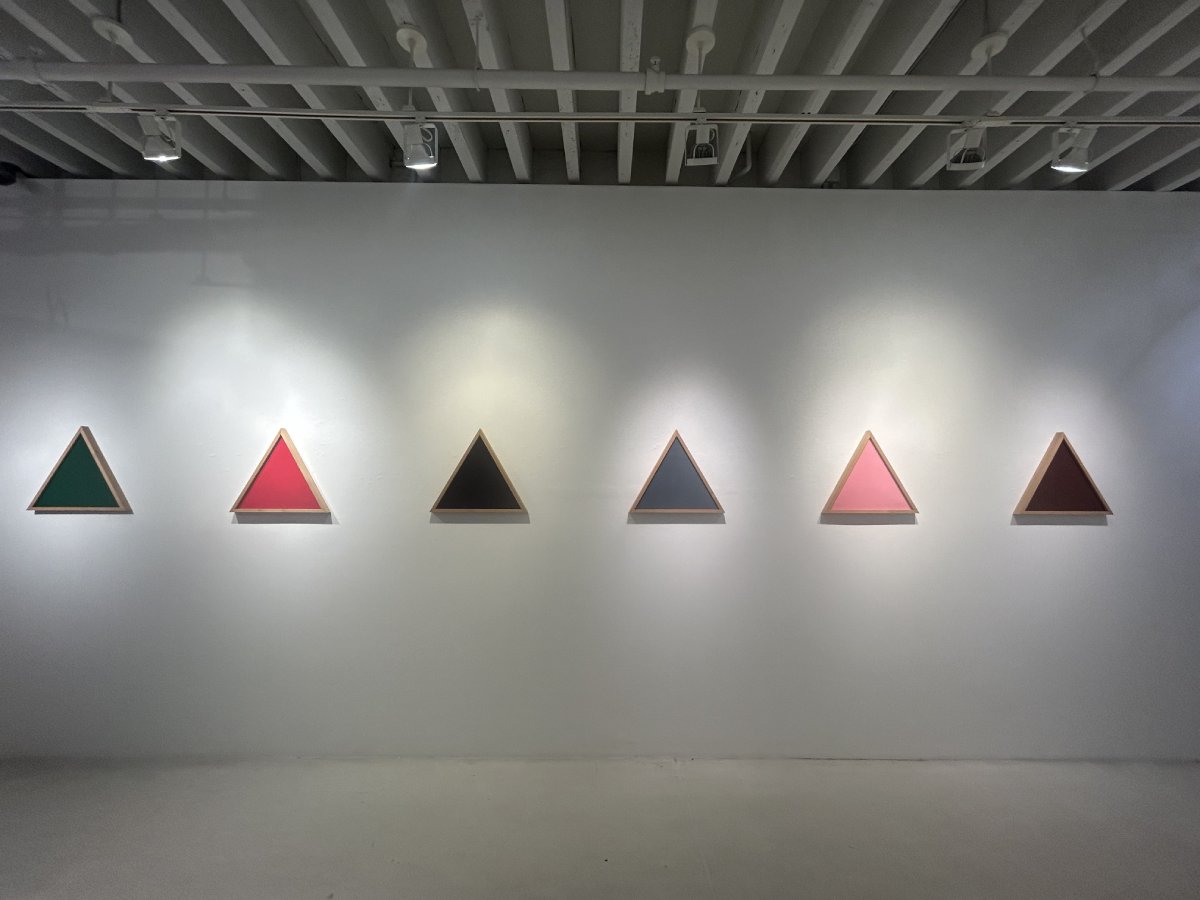 Robin Levy’s show American Model at Smith Contemporary (April 4th – April 26th) attempts to create a space that connects the sins of the past to the persisting offensives of the present. On the walls there are lots of color-coded triangles made from repurposed World War II-era velvet that serve to both echo the Nazi system as well as its reclamations, such as the up-turned pink triangle that marked the “Silence = Death” campaign, originally created by a collective of artist/activists, then widely adopted by ACT UP, which sought to counter Reagan-era stigmatization of people with HIV/AIDS.