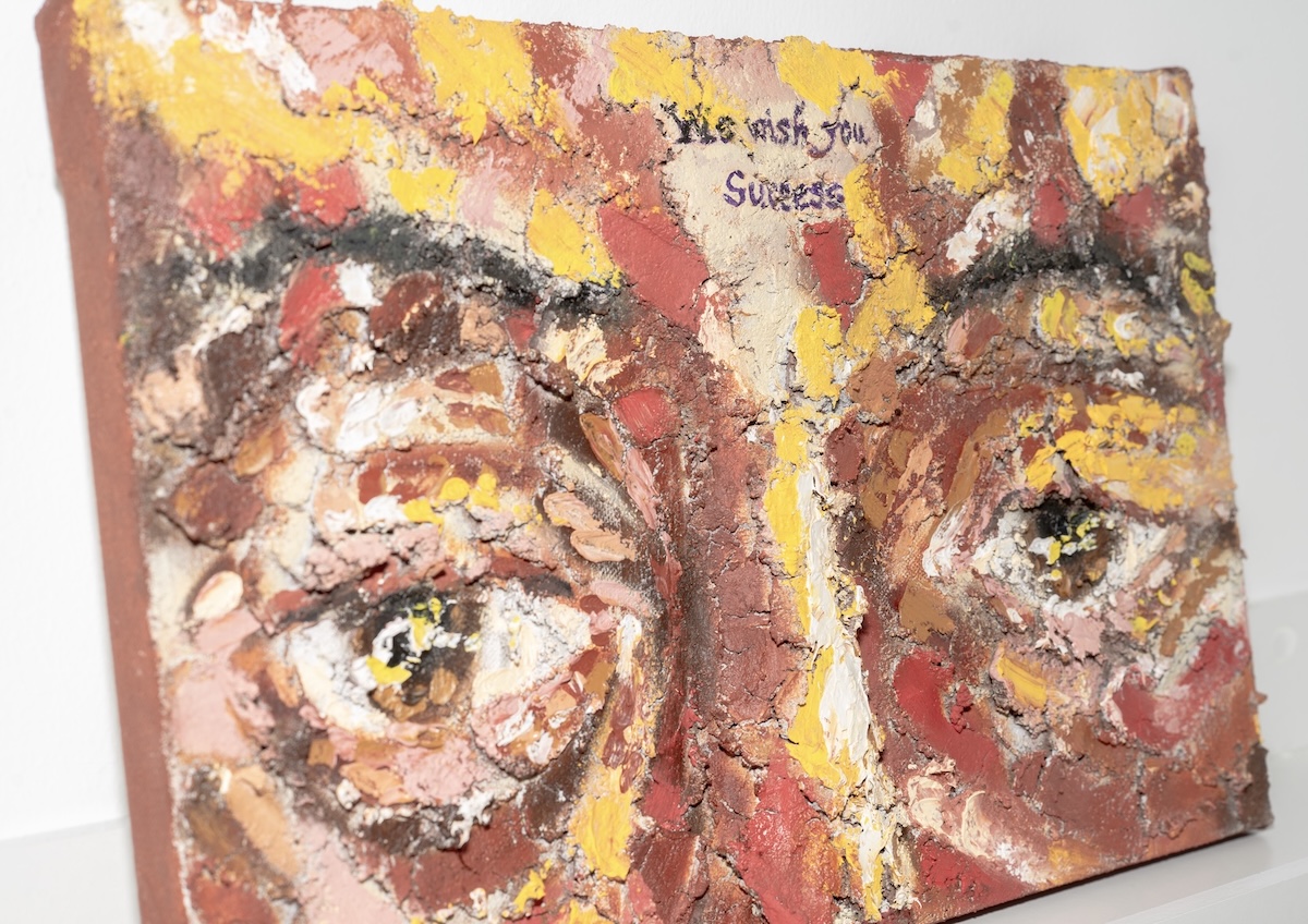 Numerous artists deal with the anger and dissatisfaction caused by rejection. In Zhenzhen Qi’s PayPayPay, the audience is asked to aggressively shake an iPhone in order to make a bug-shaped avatar excrete gold coins. The title is also a pun on “呸” (pēi), meaning “annoyance” or “disapproval,” offering a commentary on the lingering resentment that an artist may feel when they must self-exploit themselves in pursuit of career advancement. This endless chase is further explored in We Wish You Success by Anoushka Bhalla, which depicts a fatigued pair of eyes belonging to an elderly person who has spent an entire lifetime wishing and waiting for success to finally come their way. Likewise, Siyu Chen’s Waiting depicts an overturned table weighing down on a pristine egg, with phrases such as “after-party coat checker” and “art deinstalling handler” written scattered white feathers. These phrases denote proximity to an aspirational position, yet Chen is still waiting for her turn to be the invited guest rather than the coat checker, or to be the artist being exhibited rather than the art handler.