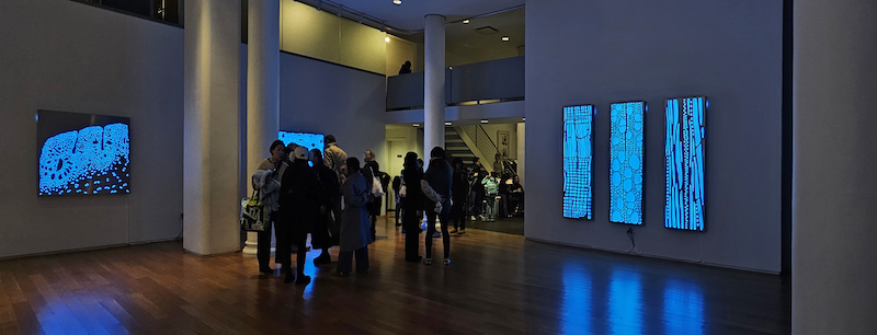 This is an elegant show. Vrachopoulos was very careful about the way and where the work hangs, preventing reflections and stray light from interrupting the viewer’s experience of Papatzanaki's luminescent sculptures.