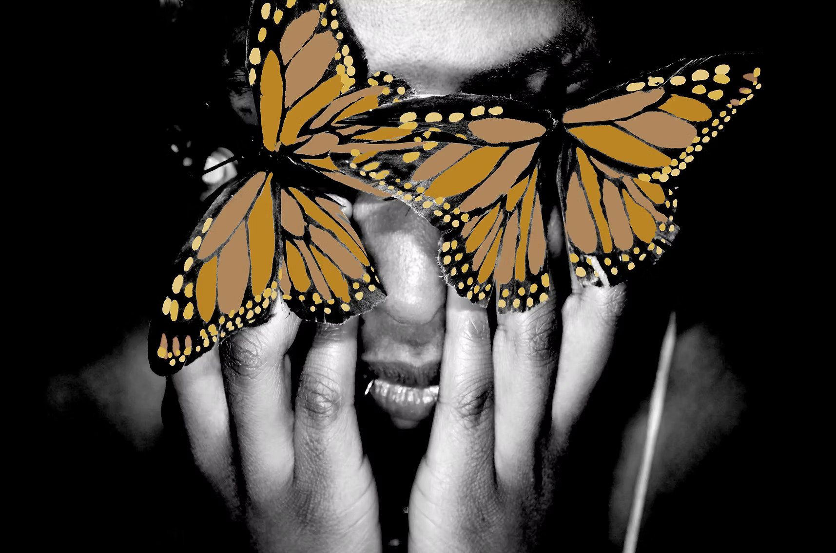 Love made the butterfly the central image of her first exhibited artwork. This was an enlarged black-and-white photographic negative, and she took it to a New York art space, Collective Hardware, as she booked a placement on the second floor on a little wall next to the hair salon, “I was so unprofessional that I was carrying it without it being wrapped,” she said. A show was being installed on the first floor produced by Amy Rosi, An acclaimed art curator, under the title “The Black and White Show”. Are you seeing where this is going? After some time and acclimation, Rosi turned to Love, “You know what? The Basquiat that was expected didn’t show up.” She eyed Love’s piece. In an in-person interview on 57th with both in December 2025, [she said], “We decided to put it up." Love observes, “This moment transformed my life."” Rosi adds, “And the butterfly became the defining image in the whole show.”