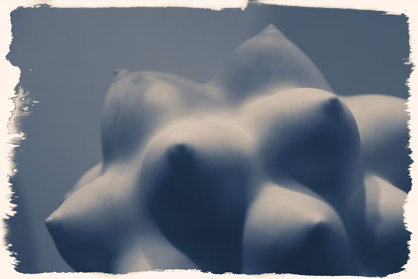 Love greatly admires Henri Cartier-Bresson, the French photographer who established street photography as a significant form and who famously described his working method as “Picking the decisive moment.” Of which he said, "Inside movement there is one moment at which the elements in motion are in balance." Love's own decisive moments can be the capture of a mood, as with the broody female in Dour, Love just catches a foot to the jaw amidst a brutal mosh pit, or the match of a mood with an arresting location, as with the untrusting look on the face of the girl in Bendy Corridor. She can certainly produce an eye-catcher, such as the shot of a young woman sharing the floor with a tiger, which, however, is approaching the photographer. Love’s human subjects are very often women. And when they are naked, as they often are, they are not erotic fodder for the male gaze but possess strong presence, messaging, “Look! This is the real me.” This is the real moment.