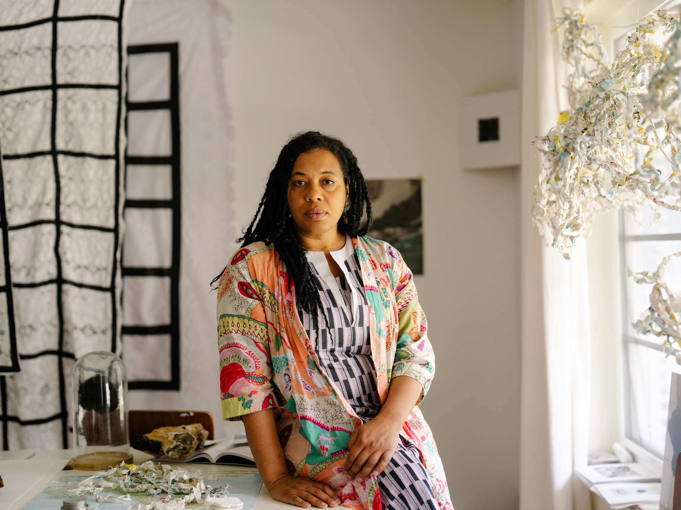 For Sonia E. Barrett, sculptural work isn’t just about a physical container, but about an embodied conversation. Barrett’s site-specific installations—primarily using furniture, maps and most recently paper, hair and fibers—meditate with the materials. The London-based artist behaves as a catalyst for the objects she engages with, and creates a space for them to become witnesses and participants of the work, beings with their own voices, histories and desires.