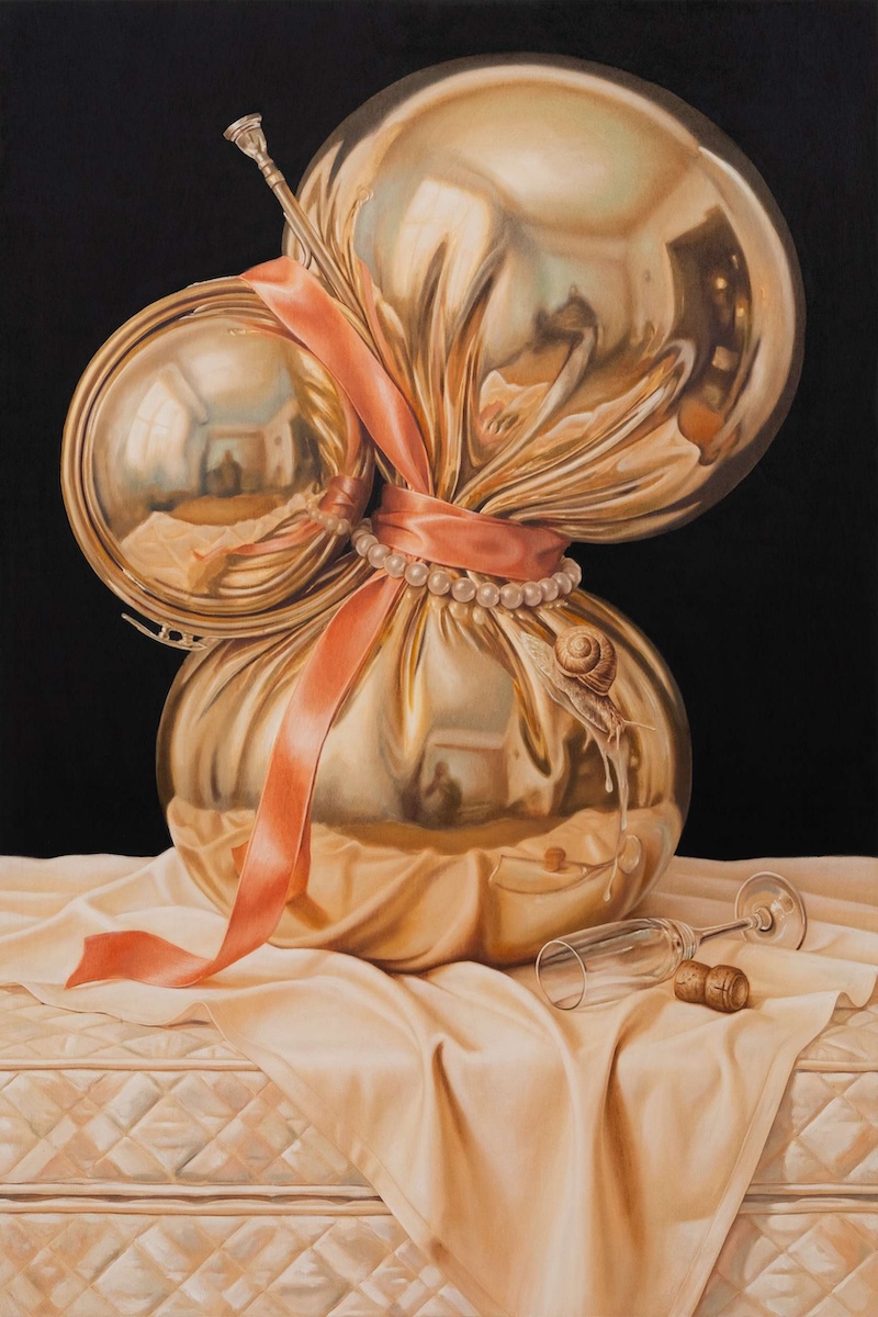 And what about the brass instruments I see in a lot of the work? Like in this case, the one protruding from the egg?