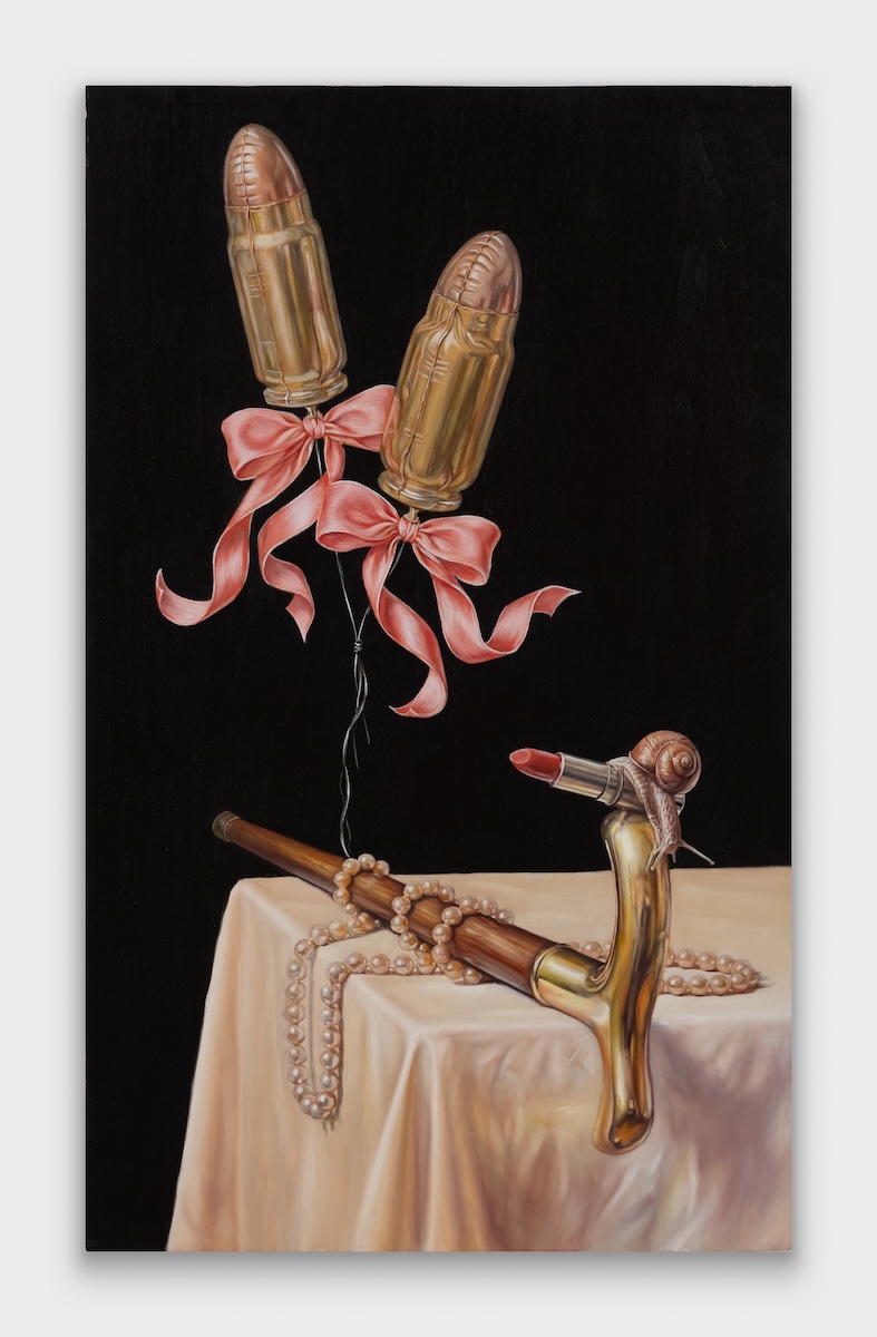 In some of the works you can really see a clash between masculine and feminine archetypes, like the bullets against the pink background.