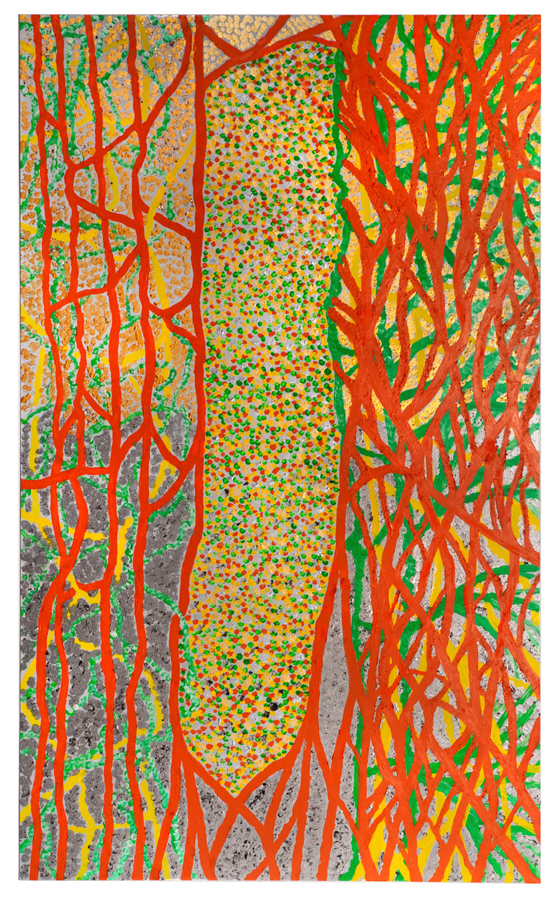 Edwin Schlossberg, Portrait of Brain Cells, 2024, 36 x 60 in, aluminum with scotchlite and acrylic © Edwin Schlossberg Courtesy the Artist and Ronald Feldman Gallery, New York