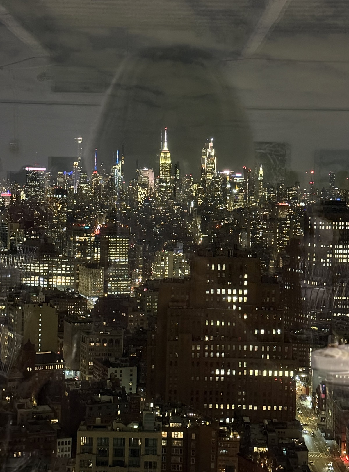 Marcus Manganni, one art star of the evening, had just sold Revolver, an architectural-grade cast acrylic arch sculpture, which brilliantly changed colors as it reflected and refracted the scenes inside and outside the wall-sized glass windows. “It’s the first piece I’ve made to record the Newtonian light changes in my studio,” he reported. “I always love looking at The Brooklyn Bridge through the piece.” His work sold to Noah Kaplan, a newer collector in Detroit and also a creative who does sound sculptures for events.