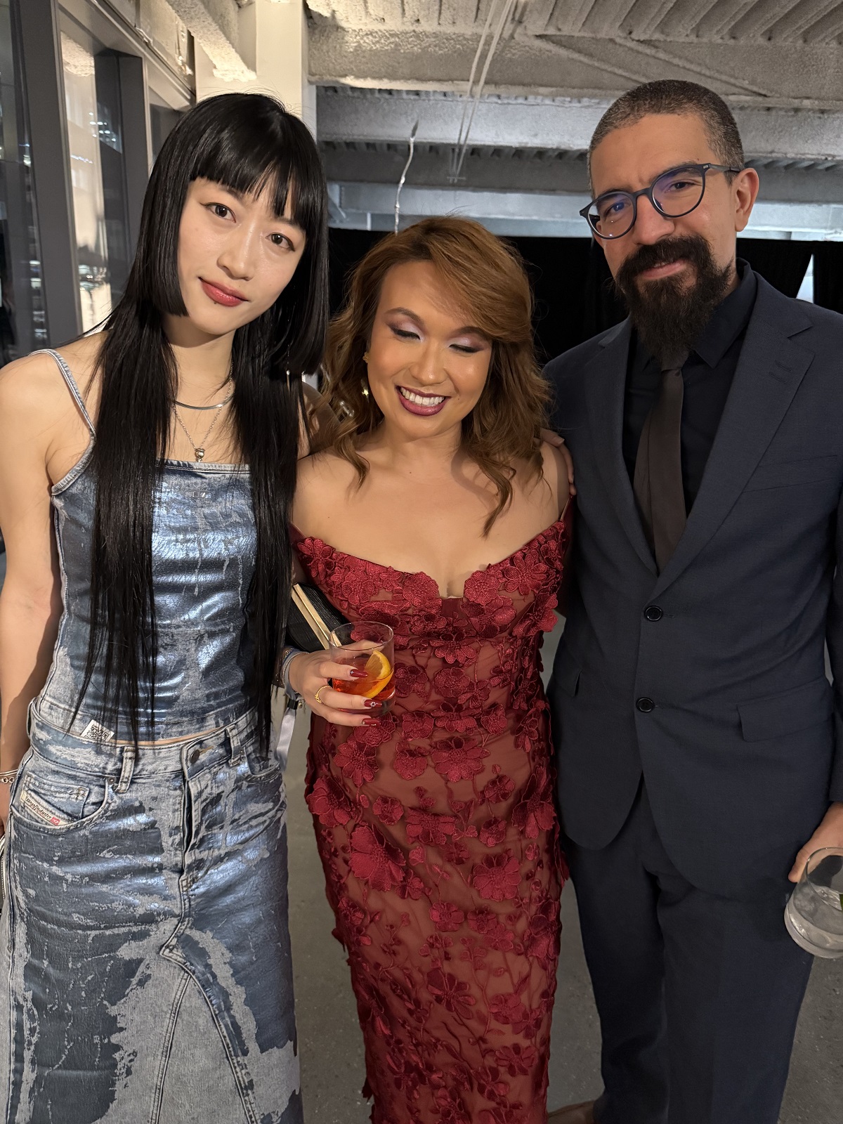 Artist Leah Ying Lin with guests Kate Lee and Clovis Lima, Junior