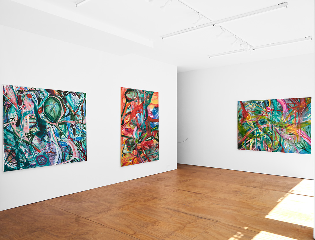 Clare Gemima: Improvisation is central to your process. How do you conceive of rhythm, syncopation, or dissonance in static form, and did you listen to music while you painted your new works?