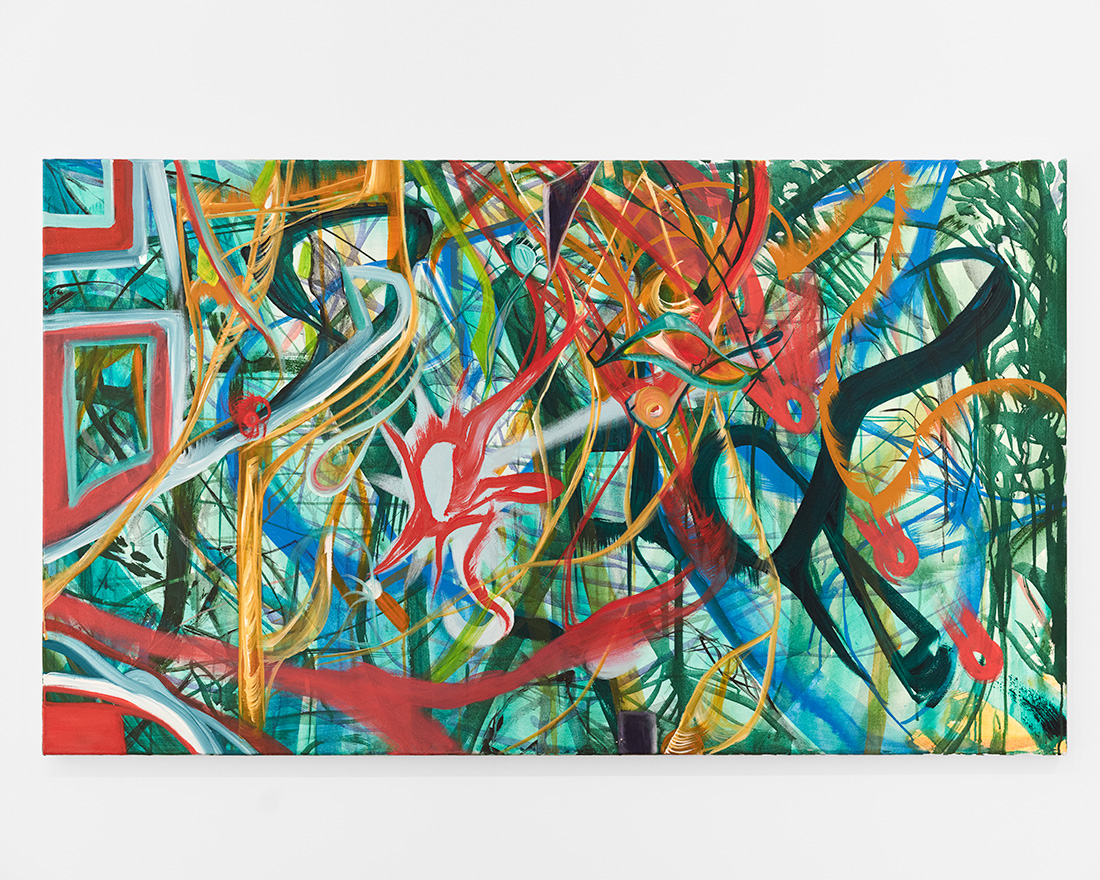 Botanist’s Disguise, 2025. Acrylic on canvas. 16 x 61 in. Photo courtesy of Half Gallery.