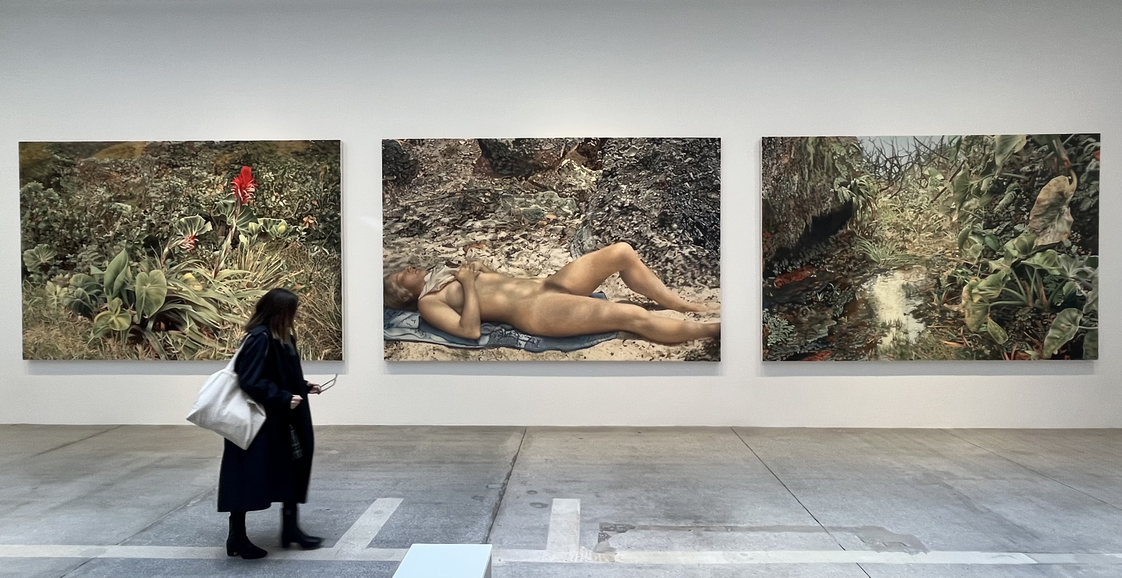 Franz Gertsch, Guadeloupe (Triptych) Bromelia, Maria, Soufrière, 2011 - 2013. Photo by Lisa Freeman