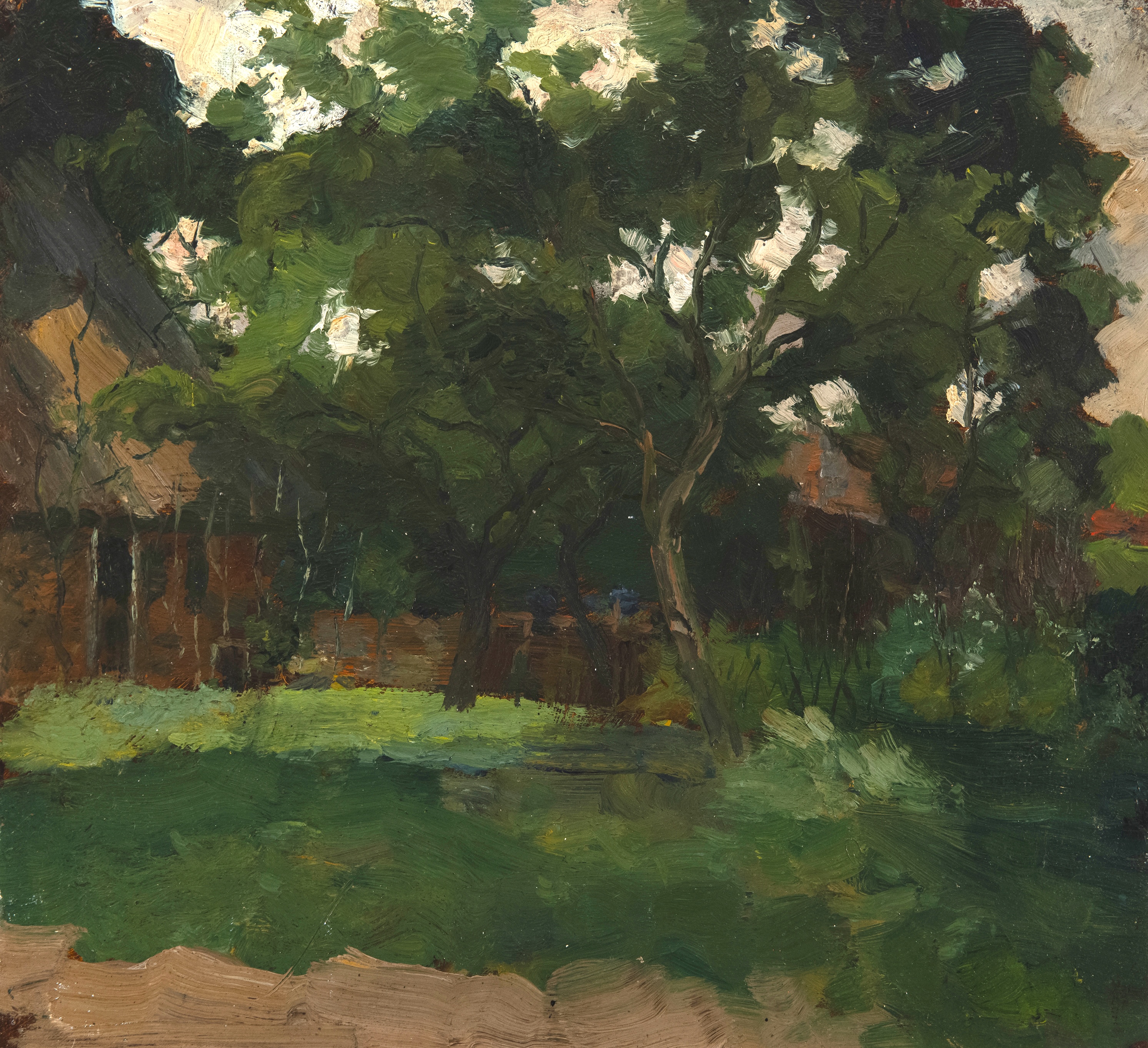 The fair has a number of such eyecatchers. Peter Finer, a London gallery which deals in the arms and armor of world-wide cultures, filled its enticingly darkened corner space with such material as multiple blades and guns, along with a headpiece with hair bristling around the mouth and a sprout of beard, entitled A Rare Odawara School 16th 17th Century Samurai Mask. Jill Newhouse, whose gallery is on the Upper East Side, has a thickly pigmented oil-on-paper treescape called Farm Buildings in Het Gooi, Veiled by Trees, c 1898-1902. It’s by Piet Mondrian who wouldn’t begin making abstractions till 1910.