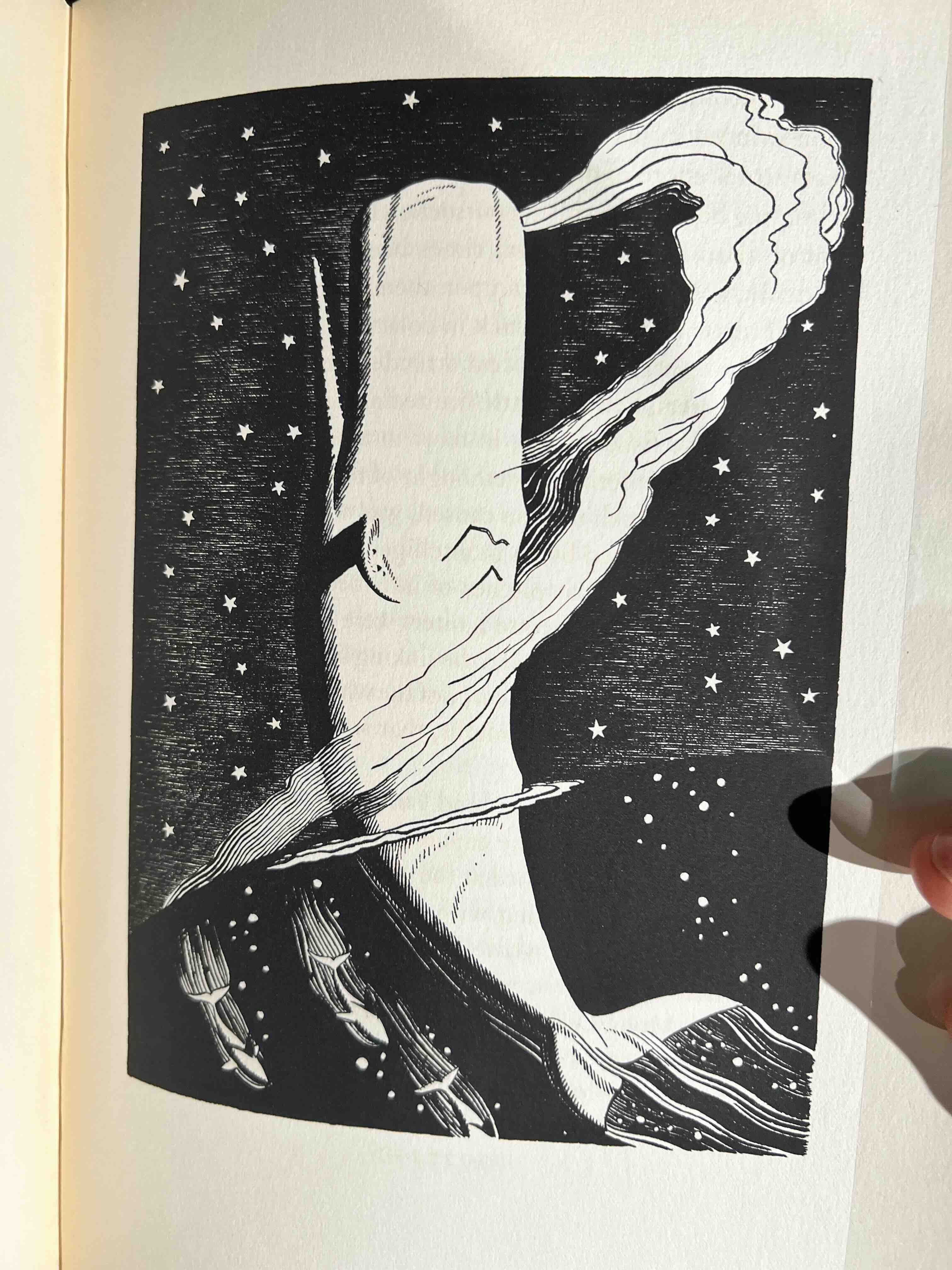 Then in 1930 a UK house, the Lakeside Press, published an edition of the novel, now entitled Moby Dick, in an edition of a thousand copies on large paper of the novel, now entitled Moby Dick.It was in three volumes, illustrated with numerous striking pen-and-ink drawings styled to look like woodcuts by the artist, Rockwell Kent. It sold out before it was printed, a success in which it was clear the illustrations paid a huge part, and Melville’s reborn novel went on to become a best seller. The Harrington copy was from that edition and it had been signed by both Kent and William Kittredge, the printer. And the above-mentioned relevance of this to our cultural moment? Texts twinned with images have been a recurrent feature in Western culture since the illuminated manuscripts of the Middle Ages. But we increasingly seem to live in a world of pictures, making Moby Dick, a great novel, saved by its illustrations, an accidental precursor.
