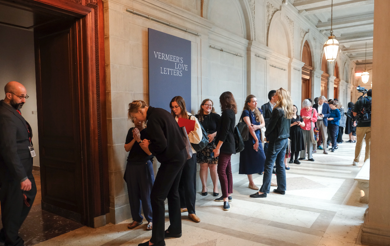 The line to get into the public opening of Vermeer’s Love Letters at the Frick stretches down the hall, onto the sidewalk and down the street. Photo by Jamie Lubetkin