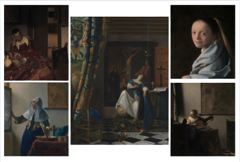 Clockwise from top left, the Met’s five Vermeers, A Maid Asleep, Allegory of the Catholic Faith, Study of a Young Woman, Young Woman with a Lute, Young Woman with a Water Pitcher.