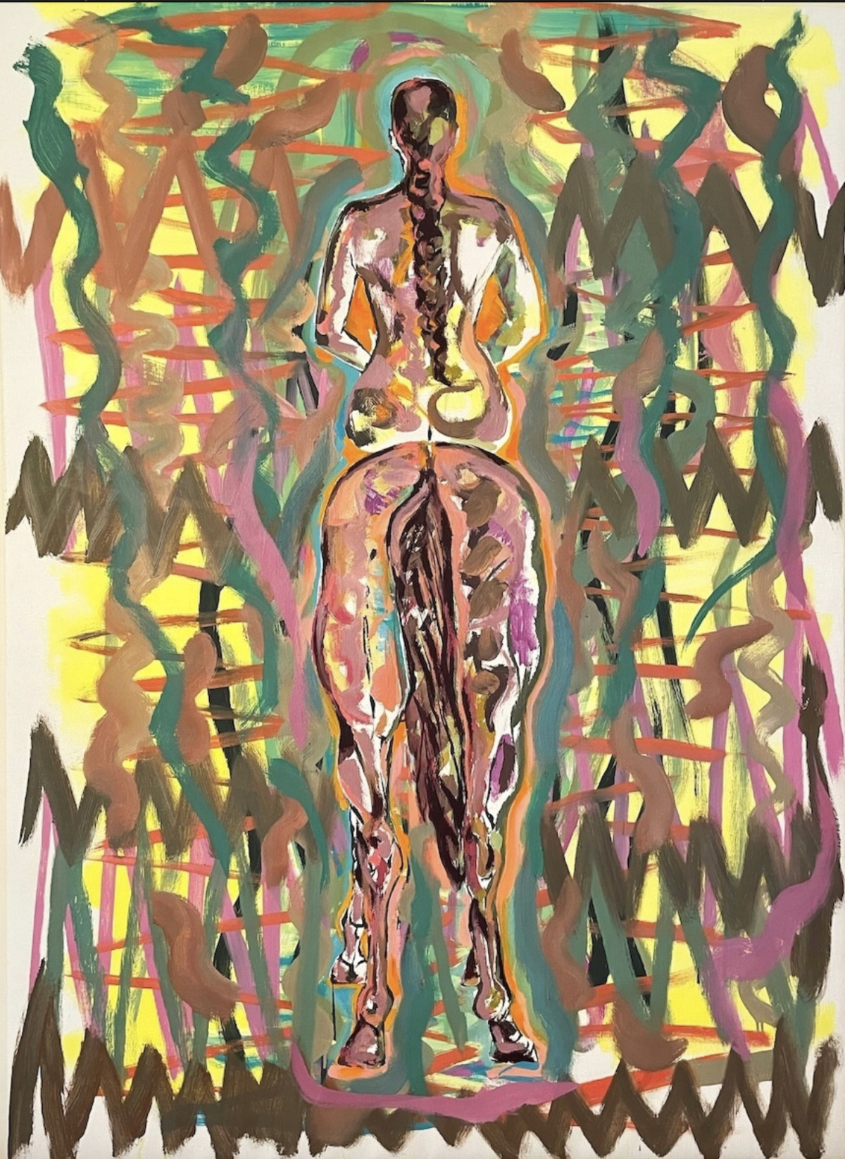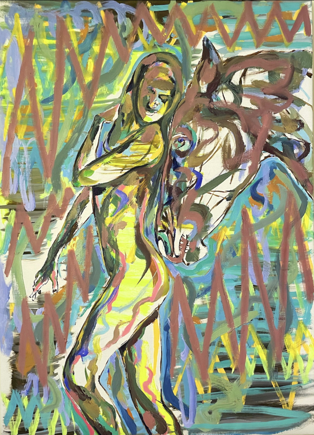Ebenezer Singh, Horse Tamer, 2025, oil on linen. 66 x 48 in (167.6 x 121.9 cm). Image courtesy of Rosebud Contemporary.