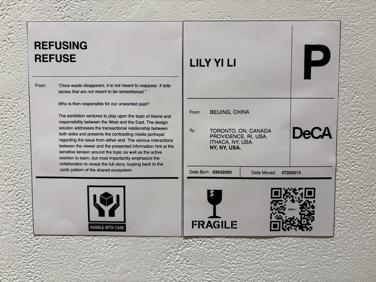 Wall label for Lilly Yi Li’s Refusing Refuse series.