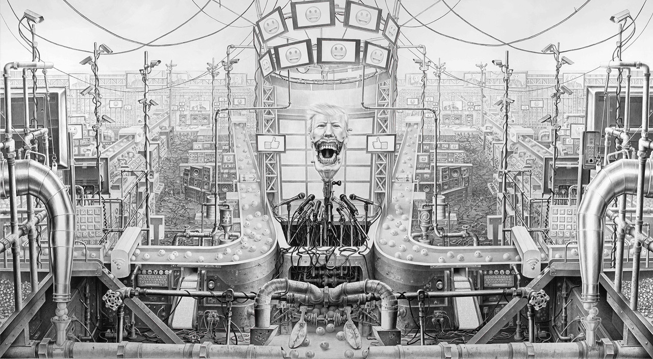 Laurie Lipton, Post Truth, 2017. Charcoal and Paper