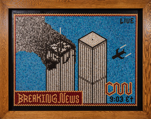 The Towers was made on the 20th anniversary of the 9/11 terrorist attack, in 2021 during the COVID lockdown. Mero explores the dark side of capitalism by depicting the terrifying scene in an intricate mosaic made from thousands of torched, polished and refinished Lincoln pennies - which signify lost monetary worth. This work is more impactful viewed in a gallery that is a refurbished bank. Mero is drawn to tragic-comedy historic narratives which explore imbalance on many levels. Girl in Water Tank is based on the tragic death of a psychologically unbalanced woman found dead in a water tank inside Hotel Cecil, a once famous 1920s hotel which is now a hostel. The accident happened in 2013 when the victim was visiting and off her medication. This poignant work explores the metaphor of a woman drowning in her own mind.
