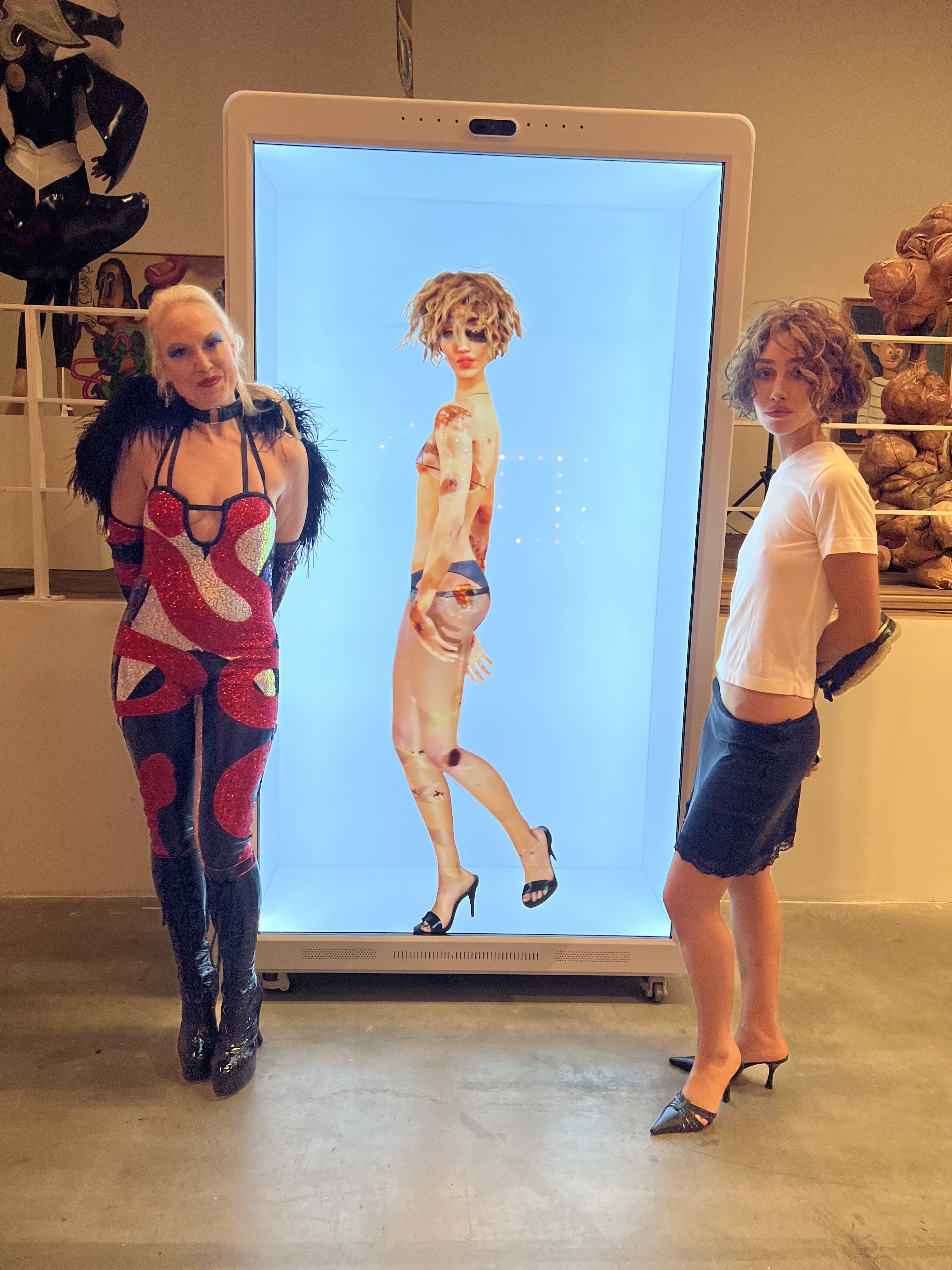 Whitney Ward and Nadia Lee Cohen with her sculpture Entitled (2025) (Photo: Joe Coleman)
