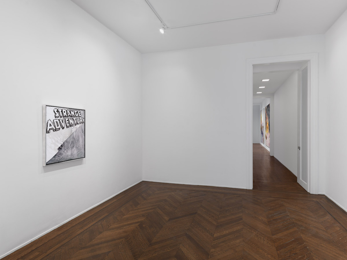 Installation view, Sigmar Polke: The Dream of Menelaus, VeneKlasen, NY showing: Strange adventure, 2004, acrylic on canvas, 31.5 x 27.5 in.