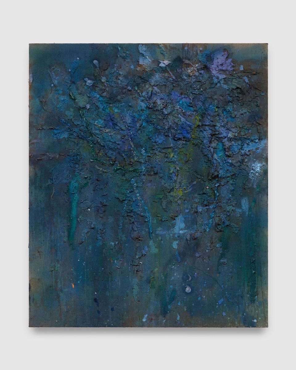An equal in chromatic concentration (in this case blues), Blue Paper Pulp Painting, 2026, is just what it professes, a quagmire of indigo and cobalt (and perhaps Prussian?) blues bathing an accretion of waded textures inducing a sense of the cosmos.