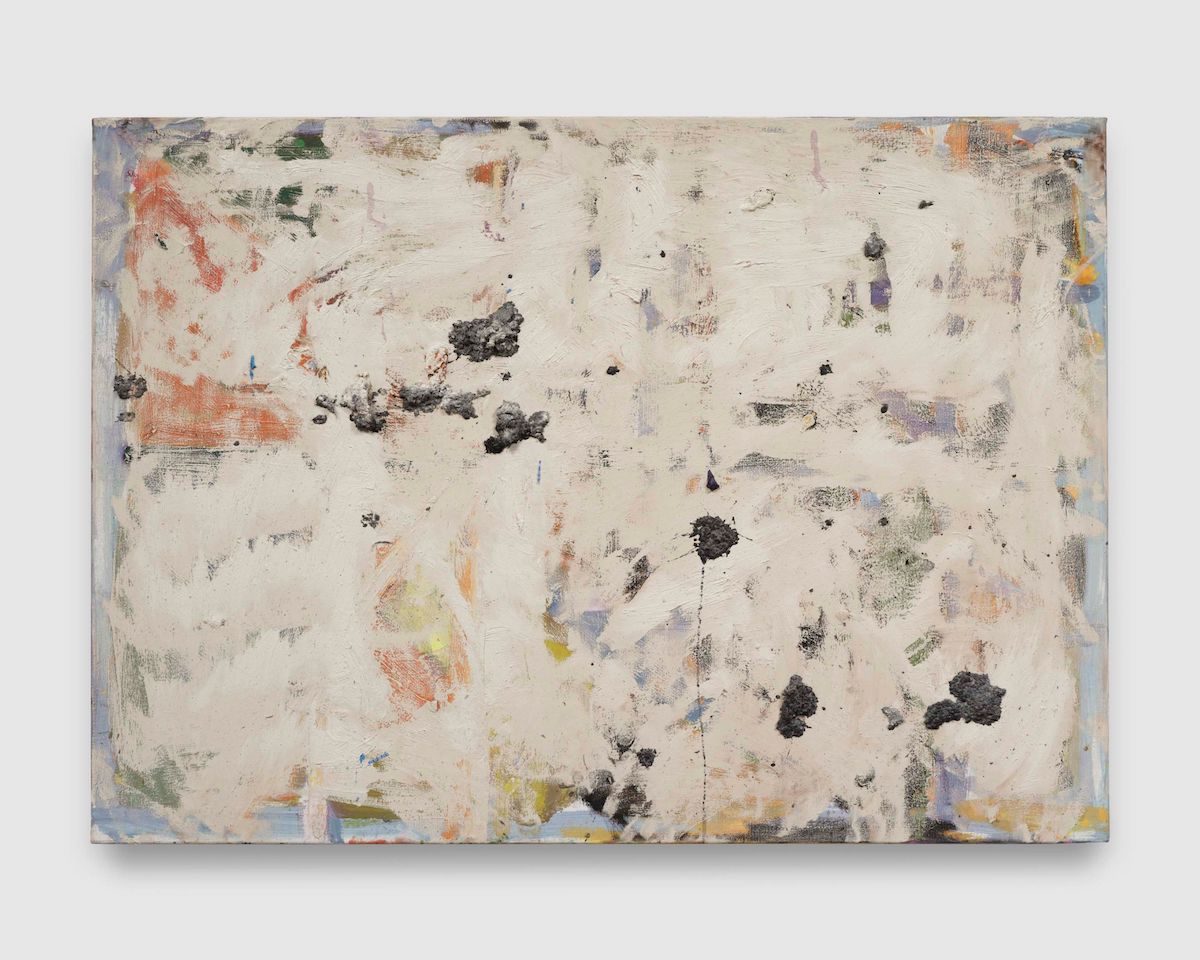 Spencer Lewis, Wall (afterimage), 2025, oil, acrylic, paper pulp, spray paint and ink on linen, 30 x 42 inches