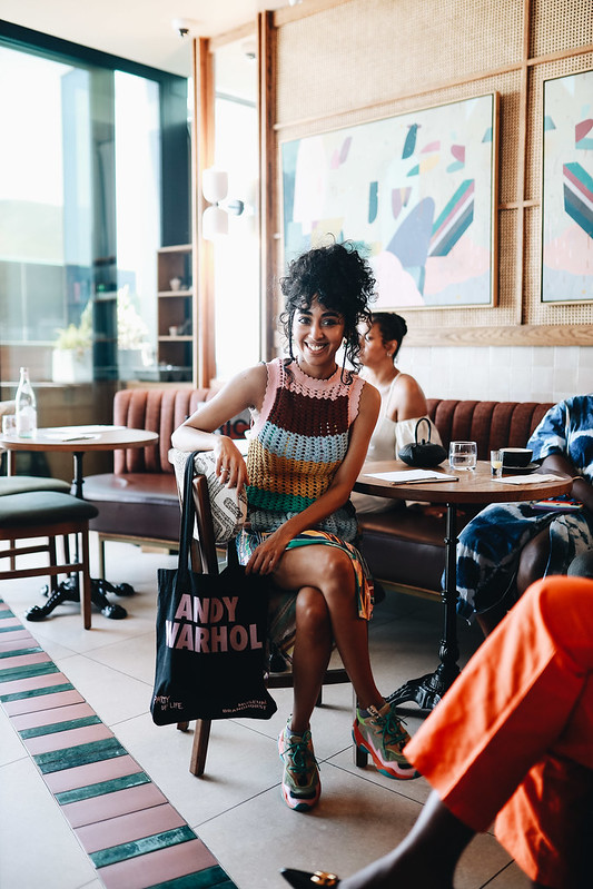 Stevenson Gallery Director Lerato Bereng often spends long hours in the booth: ‘If you look around art fair booths in London, Basel, New York the seasoned dealer may be stylishly adorned but almost certainly floating on a cloud in the form of an ergonomically sound pair of sneakers. I also dress according to my mood. Last September I was most certainly in a Naija mood having come back from Lagos days before, so it was a chance to debut all the fab new spoils.’