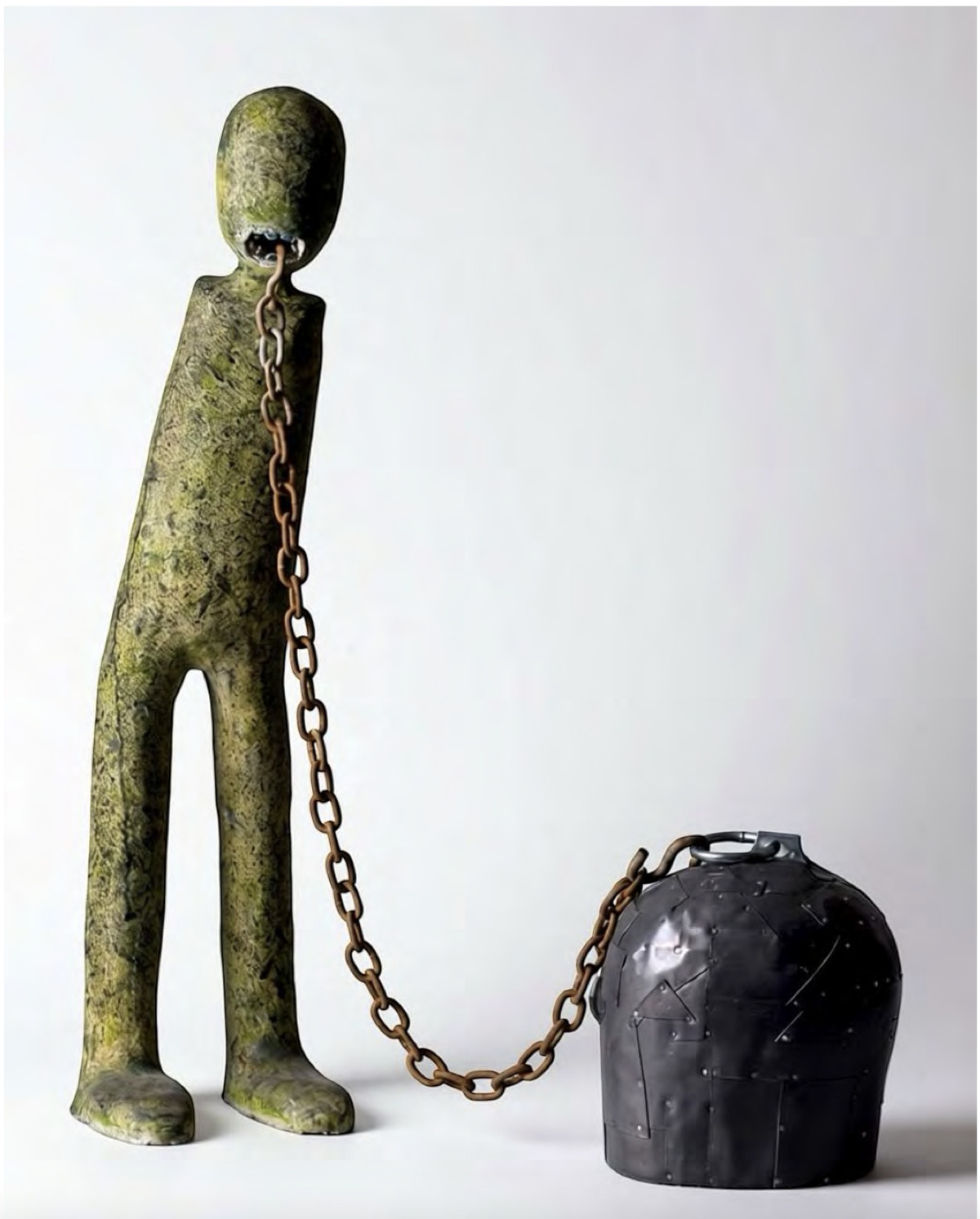 The sculptures are rather short in stature, which means that the average visitor will easily tower over them. But that smallness in size does not make them diminutive or insignificant in any way, but rather makes for an invitation to lean in and get to a more intimate level. Most of these sculptures are nude and have rather genderless appearances, all the more universalizing in their appeal to the human condition. However, these characters are not just there in the gallery, but are each engrossed in their own acts: one holds a worn shoe, another is caught in a careful balancing act as it steadies itself while their feet are tied down by heavy blocks, or a pair who are physically tied together back-to-back.