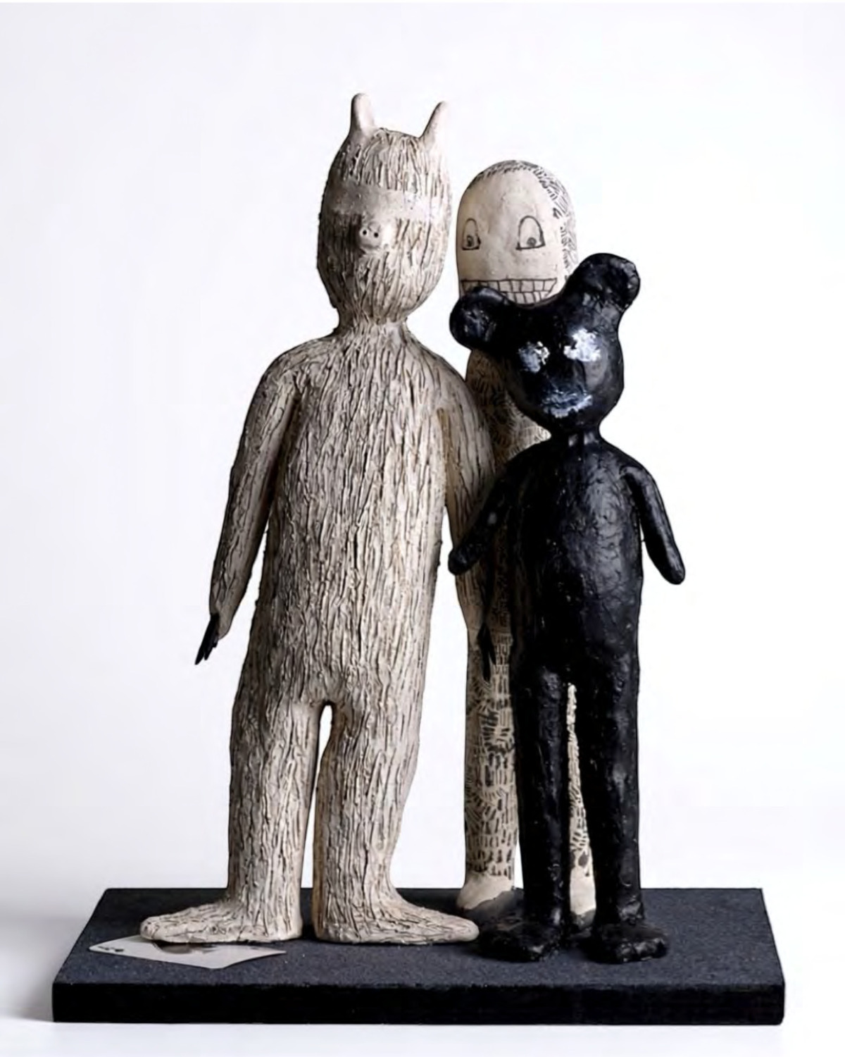 Melissa Stern, Friends, 2012, clay, graphite, paint, rubber, ink, and flocking. 18 1/2 x 14 x 10 inches / 46.99 x 35.56 x 25.4 cm. Image courtesy of A Hug from the Art World.