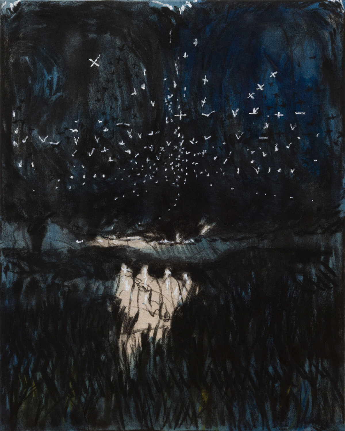 Hugo Winder-Lind (British, b. 1992), And As Senseless Black Velvet Thunder (Shaman Drum), 2026, charcoal, oil, and pastel on canvas. 39.5 x 31.5 inches / 100.5 x 80 cm. Image courtesy of Isabel Sullivan Gallery.