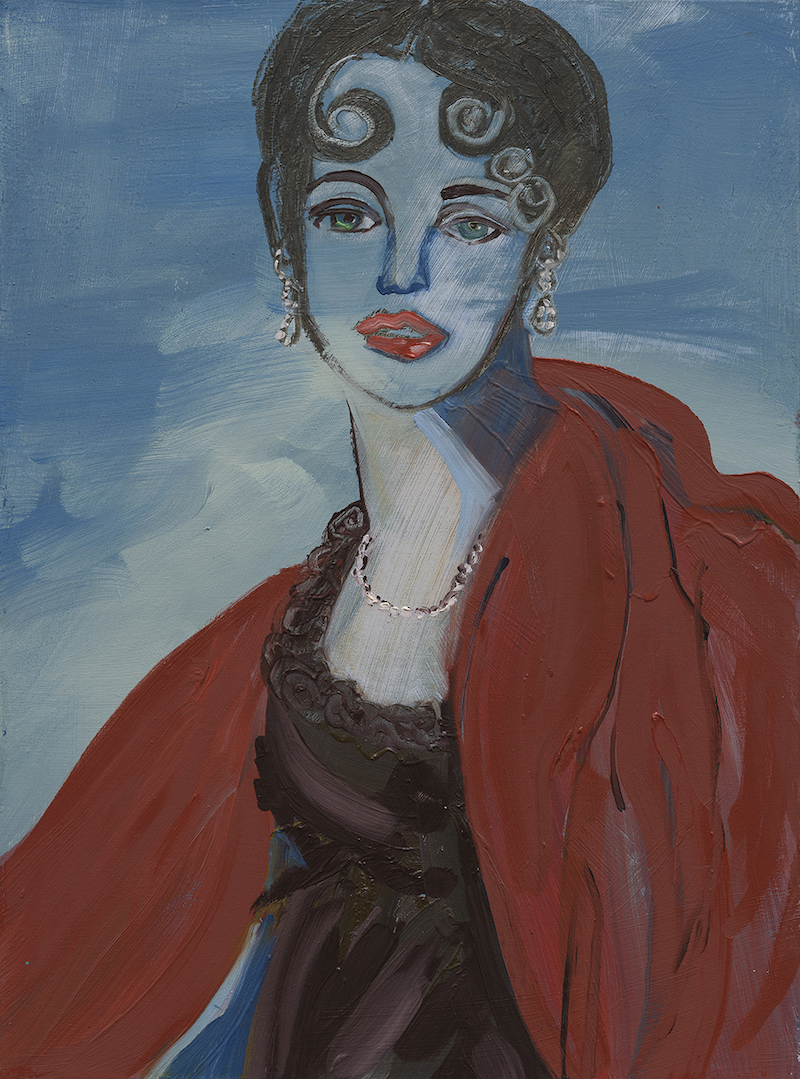 While turning the photographer’s image of Diana Vreeland, the legendary columnist for Harper's Bazaar, editor-in-chief of Vogue, and later a visionary consultant for The Met’s Costume Institute, into a painting, Baez recalled that her daughter’s first boyfriend had been Vreeland’s grandson. Ironically, the wet canvas picked up rat tracks while it lay on the floor of a former studio in Brooklyn's Gowanus area, which may be less an unintended reflection on the boy than on a protective mom, pondering whether any man was right for her child.