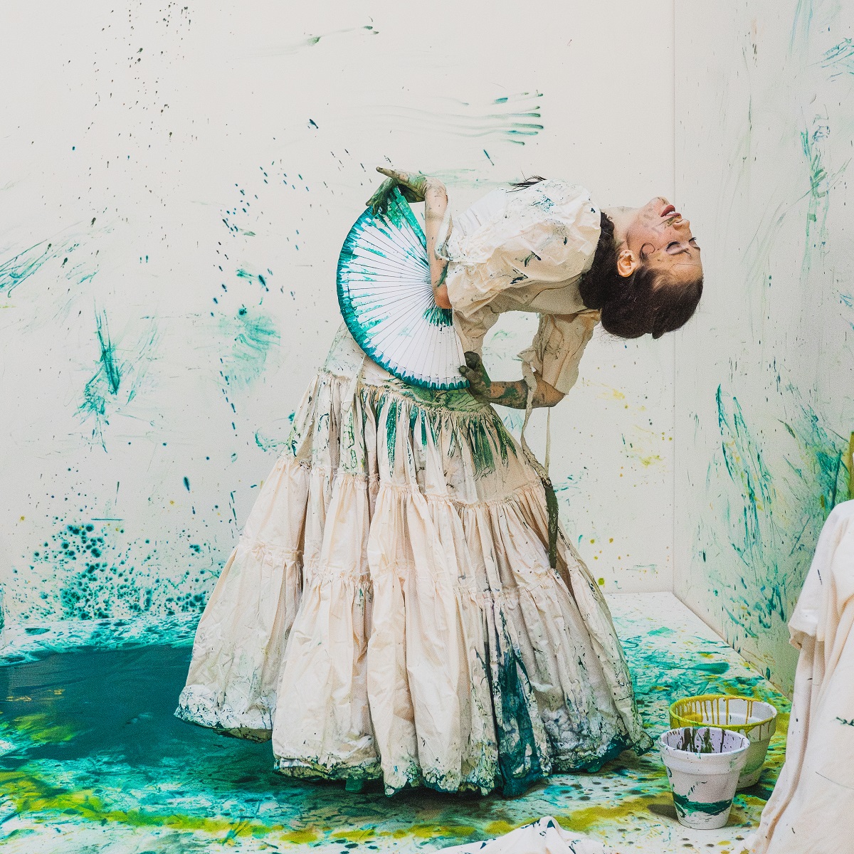 Now, in this era, we speak with the prophet herself. Only this prophet doesn’t want to lecture us, doesn’t want to guide us anywhere, because she doesn’t think she knows better. Instead, she wants to play. She wants to paint on your skin, dance on the canvas, and let a single line carry the weight of a whole self. She wants to blur the border between artist and artwork, between pride and instinct. “I think you have to keep your ego in check,” she says, “and try to create from a place of honesty.”