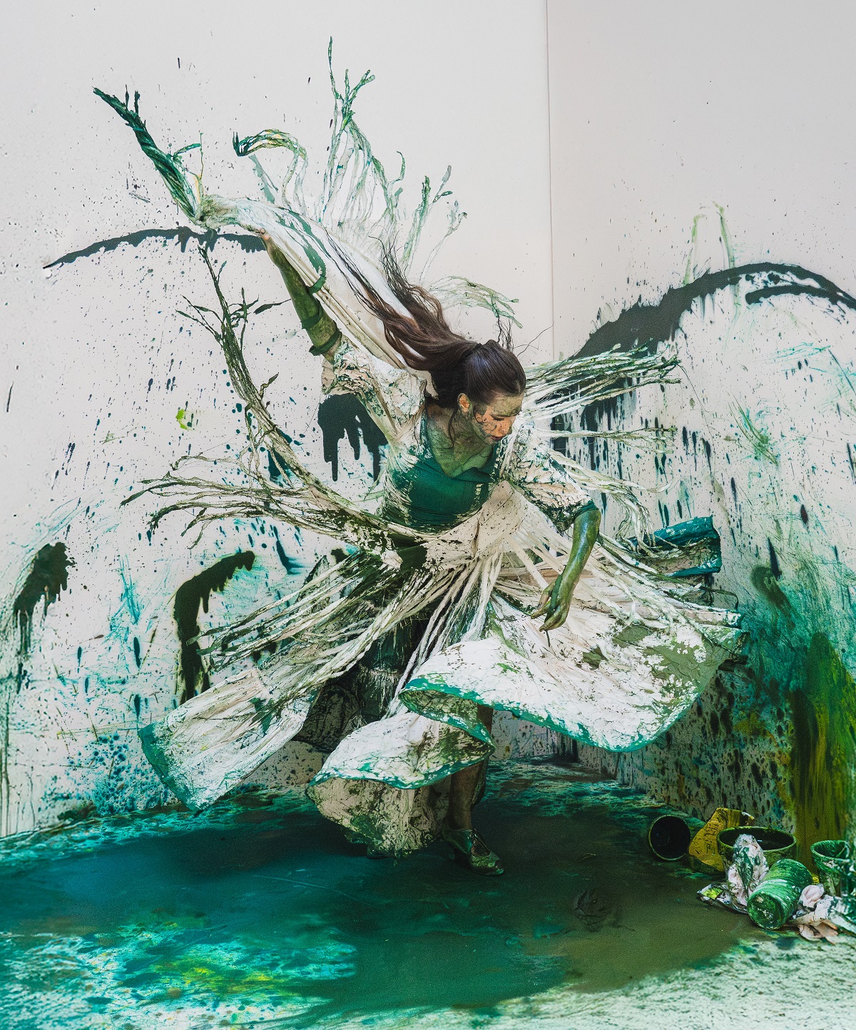 We talked about her latest series, La Huella del Flamenco (“The Footprint of Flamenco”). In it, everything the Forbes 30 under 30 honoree stands for as an artist seems to converge: the unpredictability, the vulnerability, the celebration of culture, the colors, the movement, the performance. The series is part of her wider, ongoing project Danzar la Pintura (“To Dance the Painting”), which she envisions as a global endeavor to eventually trace through paint and performance the physical memory of dances from cultures around the world.