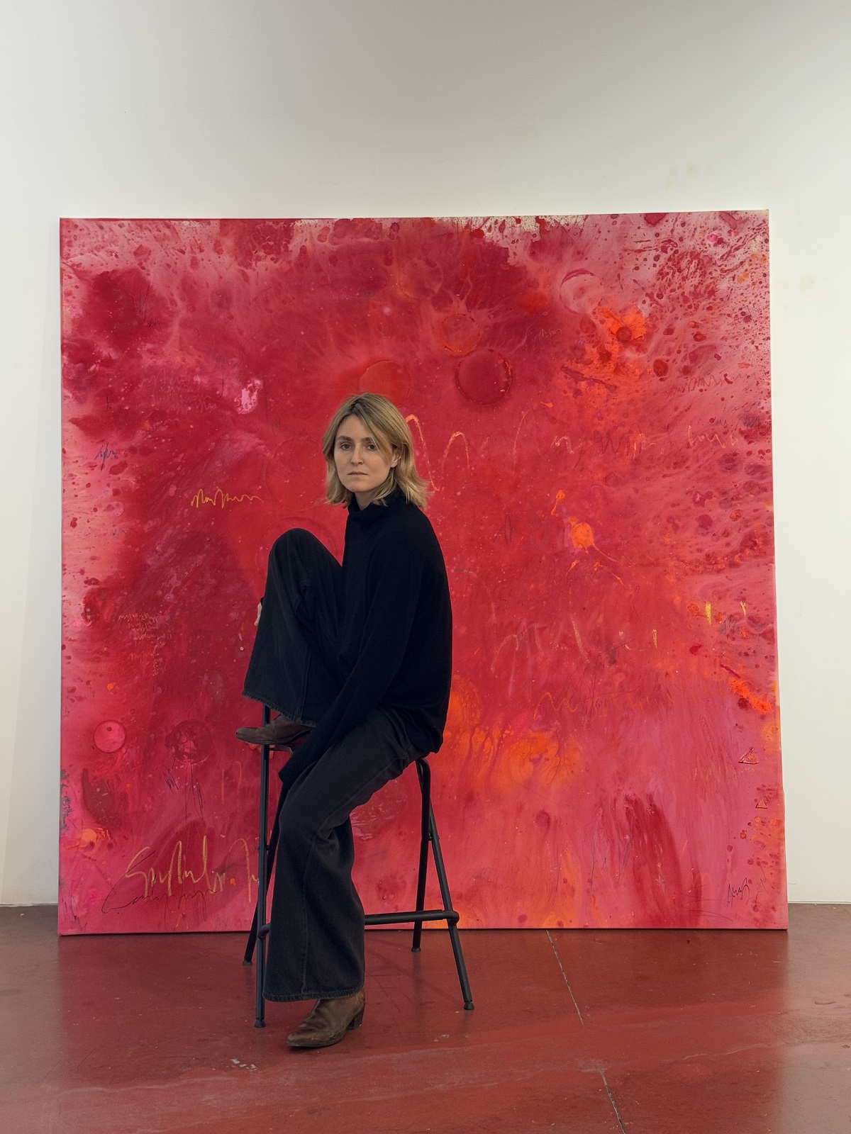 “My technique,” she explains, “is like a cocktail of Helen Frankenthaler and Cy Twombly.”