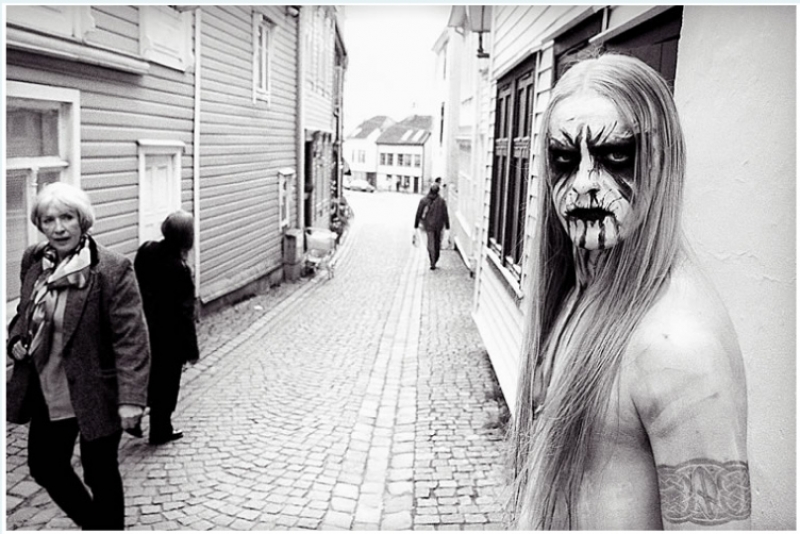 While Norway isn’t responsible, as is commonly assumed, for spawning the black metal genre, the country has since the 1990s inarguably refined the black metal aesthetic to what we know it as today, bringing the visceral ugliness of the music out into the real world through aggressive acts of violence and destruction to whet the appetites of a mass media hell-bent on sensationalism. Behind the few acts of murder, violence, and arson are the bands themselves – bands like Darkthrone, Mayhem, Gorgoroth, Nattefrost, Immortal, and Emperor. The members of these bands have served as the subjects of a series of iconic portraits by photographer Peter Beste. Photos from the “True Norwegian Black Metal” series have been reproduced endlessly in art and fashion magazines alike, as well as in posters and postcards avidly collected by both fans of the genre and subcultural tourists. Now, a representative selection of these photos is being shown in Berlin for the first time at the Pool Gallery.